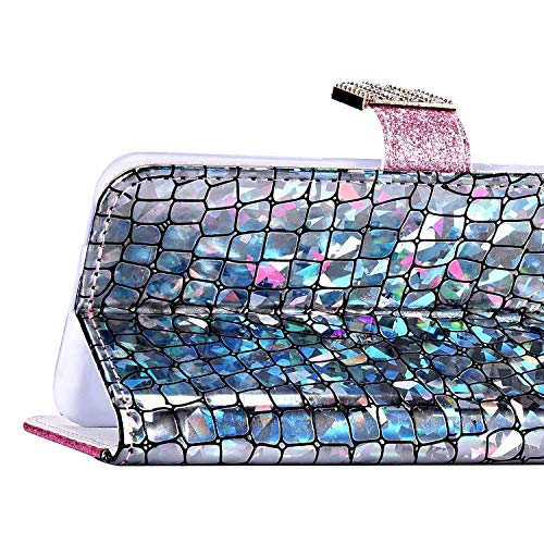 Uposao Compatibile con Samsung Galaxy S20 Plus Custodia Flip a Libro Portafoglio in PU Pelle Glitter Brillantini Strass Case Funzione Supporto con Porta Carte Antiurto TPU Bumper,Argento