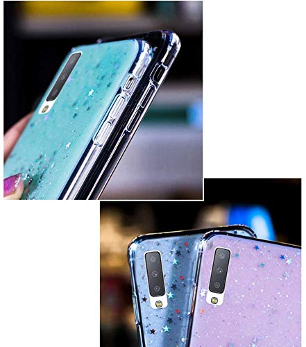 Uposao Compatibile con Samsung Galaxy A7 2018 Custodia Silicone Morbida Trasparente Cover Glitter Brillantini Bling Paillettes Case Antiurto Bumper Ultra Sottile Cover,Verde