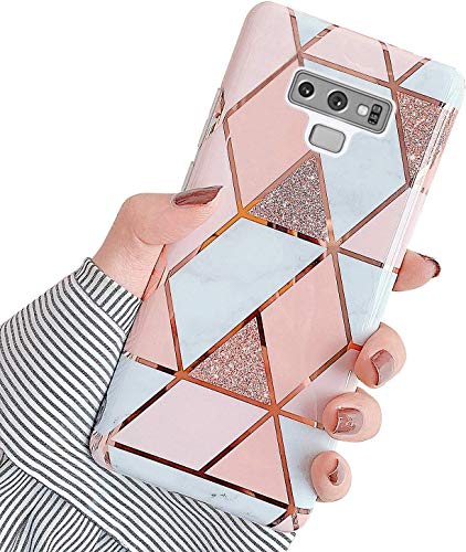 Uposao Compatibile con Samsung Galaxy Note 9 Custodia Ultra Sottile in Silicone Colorato 3D Bling Glitter Modello in Marmo Custodia Morbida Antigraffio Cover per Cellulare Paraurti in TPU,Rosa Bianco