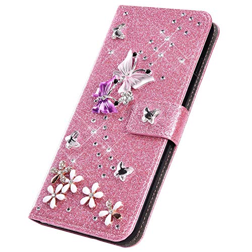 Uposao Compatibile con Samsung Galaxy S7 Edge Custodie a Libro Bling Glitters Farfalla Fiore Diamanti Flip Caso Portafoglio Premium PU Pelle Sintetica con Porta Carte e Chiusura Magnetica,Rosa