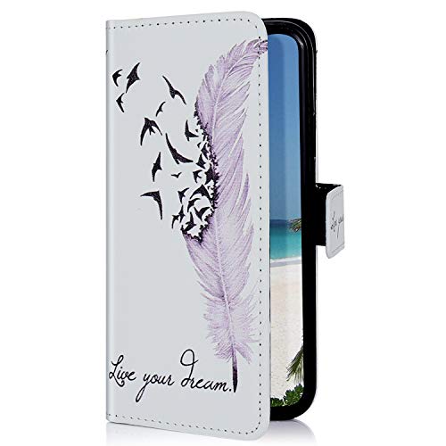 Uposao Compatibile con Samsung Galaxy S10 3D Effect Painted Bling Glitter Flip Cover Custodia Caso Libro Pelle PU e TPU Silicone con Funzione Supporto Chiusura Magnetica Portafoglio,Piume e Uccelli