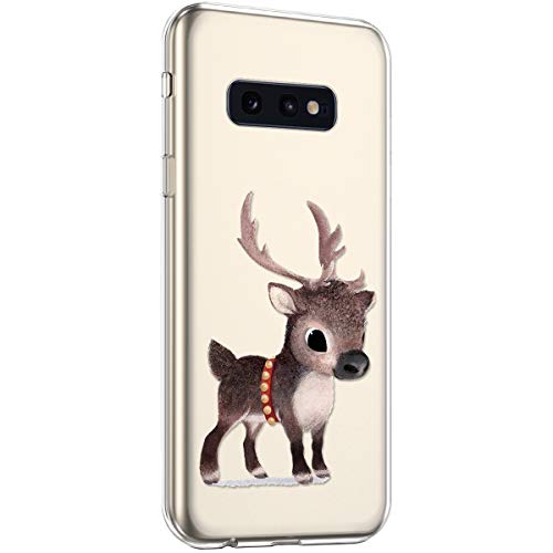 Uposao Compatibile con Samsung Galaxy S10e Natalizia Snowflake Serie Pittura Cover in Silicone TPU Trasparente Chiaro Morbido Leggero Antiurto Custodia Protettiva con Design Unico,Cervo Natale