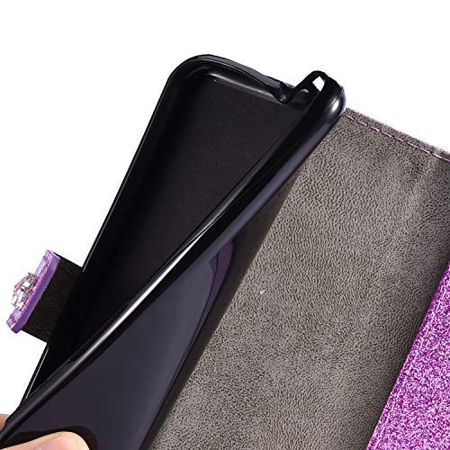 Uposao Compatibile con Samsung Galaxy S6 Flip Case PU Pelle Custodia Portafoglio Sparkle Glitter Bling a Farfalla Strass Diamante Custodia Caso Fibbia Magnetica Leather Case,Viola