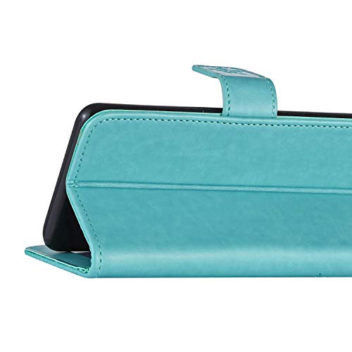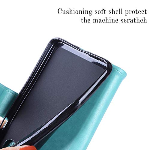 Uposao Cover Compatibile con Huawei Y5 2019 Custodia Cover Protettiva in Cuoio Flip Libro Portafoglio Resistente Antiurto con Supporto Portafoglio Gatto e Sakura Campanula per Donna,Verde