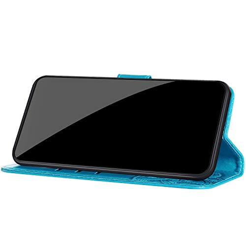 Uposao Cover Compatibile con Huawei P30 Lite Glitter Custodia in Pelle Diamante Strass Ragazza Donna Cover 3D Farfalla Motivo Floreale Portafoglio a Conchiglia Protettiva,Blu