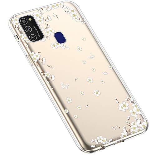 Uposao Cover Compatibile con Samsung Galaxy M21 Trasparente con Disegni Slim Morbida Silicone Sottile TPU Primaverile Flessibile AntiScivolo Fiore Animal Backcover Custodia,Fiori Ciliegio