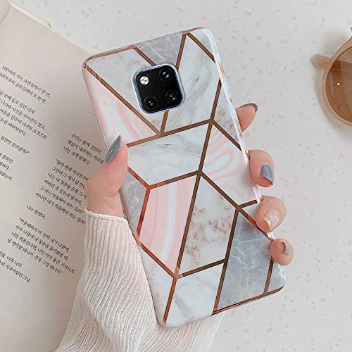 Uposao Custodia Compatibile con Huawei Mate 20 Pro Marmo Marble Design Gold Gradient Cubes TPU Gel Silicone Protettivo Skin Cover Motivo Geometrico Creativo Morbida Antiurto in Gel,Marmo Rosa Grigio