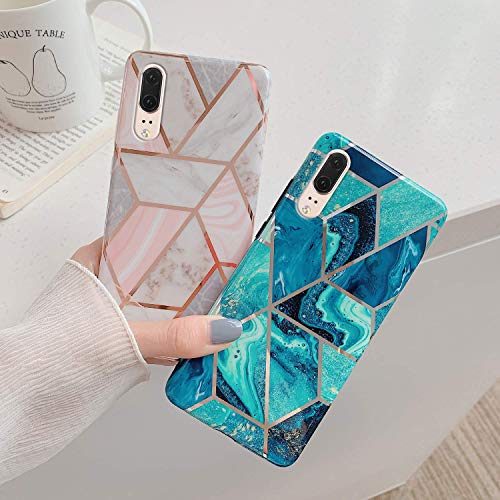 Uposao Custodia Compatibile con Huawei P20 Marmo Marble Design Gold Gradient Cubes TPU Gel Silicone Protettivo Skin Cover Motivo Geometrico Creativo Morbida Antiurto in Gel,Verde Gold