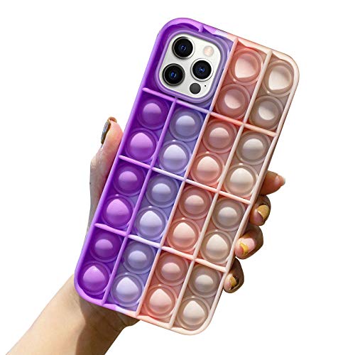 Uposao - Custodia compatibile con iPhone 12 Pro Max Fidget per telefono Push Pop Bubble Fidget Alleviare lo stress, in morbido silicone antiurto custodia in silicone anti-ansia, colore: Viola