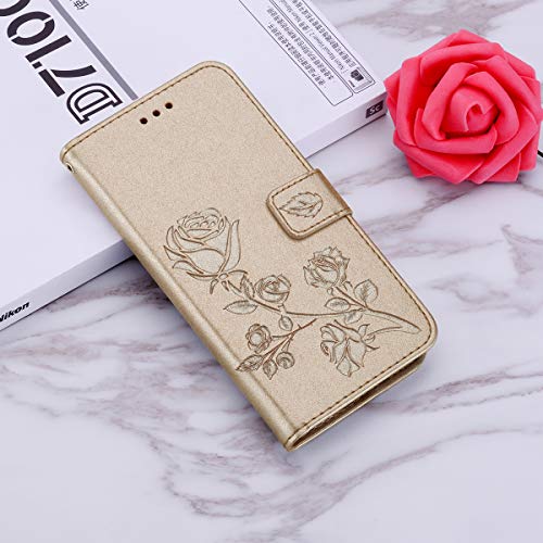 Uposao Custodia Compatibile con Samsung Galaxy J6 2018,Bookstyle Portafoglio Flip Cover con Chiusura Magnetica,Sopporto Pieghevole e Tasche Interne per Carte di Credito o d'identita-Oro