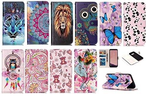 Uposao Custodia Galaxy S8, Dipinto Design Flip Cover Custodia per Samsung Galaxy S8 Protettiva Caso Portafoglio PU Pelle con Super Sottile Morbido Silicone Gel TPU Interno Case-(Gufo)