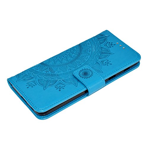 Uposao Custodia Galaxy A6 Plus 2018, Fiore Modello PU Pelle con Sottile Morbido Silicone TPU Interno Case Flip Cover Shell Copertura per Galaxy A6 Plus 2018-(Blu)