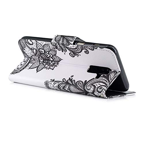 Uposao Custodia Galaxy A6 Plus 2018,Galaxy A6 Plus 2018 Custodia in Pelle PU, Painted Pattern PU Leather Wallet Stand Flip Cover Portafoglio Custodia Libro Protettiva Telefono Case-(Fiore Nero)