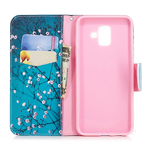 Uposao Galaxy A6 2018 Cover, PU Leather Wallet Stand Flip Cover Portafoglio Custodia Libro Protettiva Case Telefono Pelle Custodia Antiurto Coperture per Samsung Galaxy A6 2018-(Fiore di Prugna)