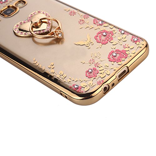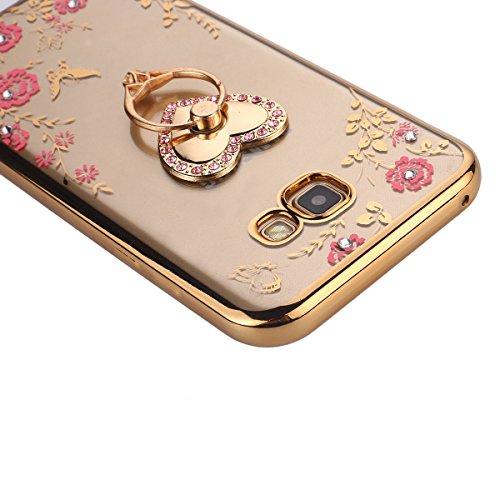 Uposao Galaxy A7 2017 Cover Samsung Galaxy A7 2017 di Tyrant Gold Giardino Segreto Farfalla Rosa Fiore Modello Soft TPU Case Bumper Custodia con Parati Diamond Amore Ring Finger Ring
