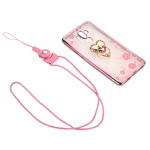 Uposao Huawei Mate 9 Cover, Huawei Mate 9 Case rosé Oro Giardino Segreto Farfalla Rosa Fiore Modello Soft TPU Case Bumper Custodia con Parati Diamond Amore Ring Finger Ring