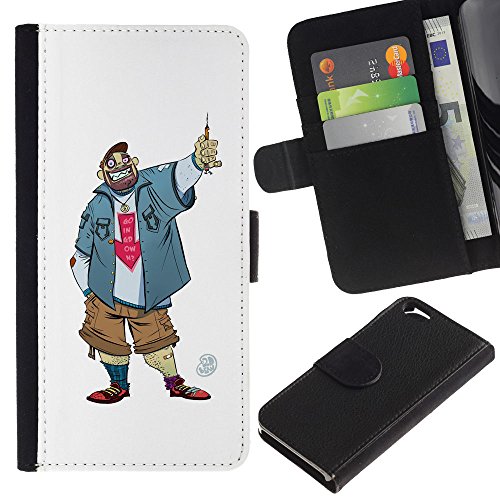UPPERHAND (Non Per IPHONE 6 PLUS) Stile Immagine Portafoglio Carte PELLE FLIP TPU CUSTODIA CASE PROTEZIONE COVER IN GUSCIO Per Apple Iphone 6 4.7 - tipo tizio uomo sorriso penale caricatura