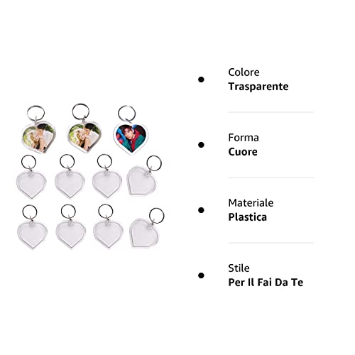 Upstore 25 portachiavi in acrilico trasparente per foto a forma di cuore vuota cornice portachiavi inserto portachiavi personalizzato portachiavi perfetto per regalo fai da te