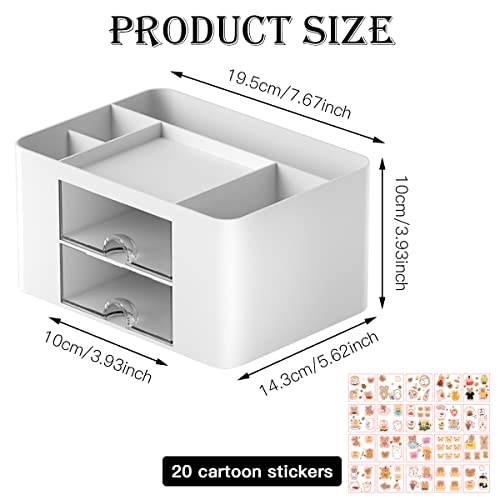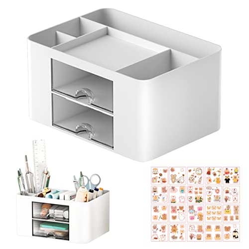 UptVin Organizer da ufficio, 7 scomparti, organizer da scrivania con cassetti e 20 adesivi orso, portapenne, multifunzionale per penne per ufficio, casa, scuola, risparmio di spazio, bianco