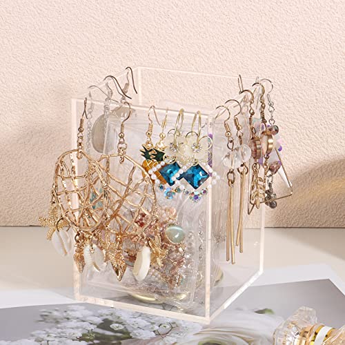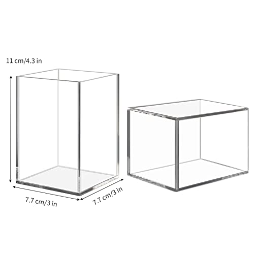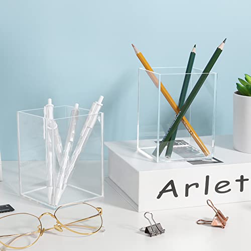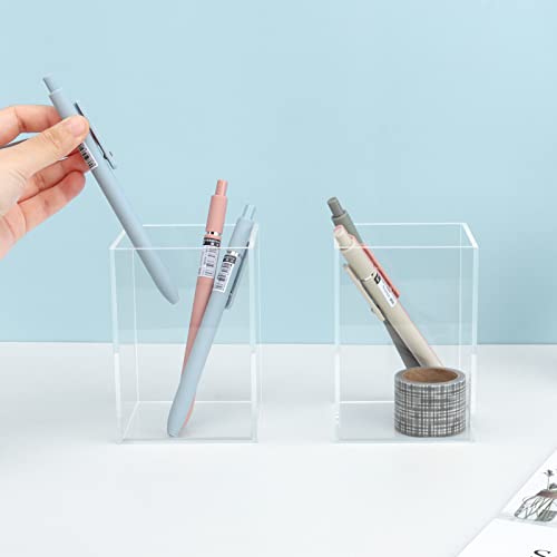 Uquelic Portapenne in acrilico, 2 Pezzi Portamatite da scrivania di forma quadrato, multifunzione trasparente, Porta pennelli per Trucco