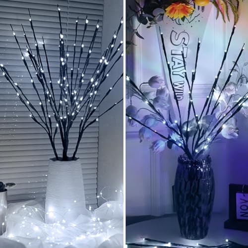 URAQT 73 cm Catena Luminosa a LED, 3 Pezzi Luci del Ramo Pieghevole, con 60 LED, Luci LED da Interno a Ramoscello, Decorazione per Feste e Natale, Luci Decorative per la Casa (Luce Bianca)