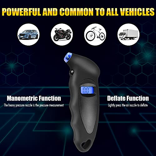 URAQT Manometro Pneumatici Digitale, Manometro Digitale Pressione Gomme Aria Manometro Pressione con Schermo Retroilluminato a LCD per Bicicletta, Auto, Moto