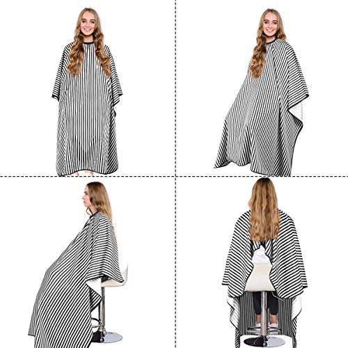 【Materiale Leggero】Il mantello da parrucchiere è realizzato in nylon selezionato che è leggero, traspirante e più resistente. L'abito da parrucchiere è morbido e setoso, quindi i capelli scivoleranno via invece di attaccarsi.