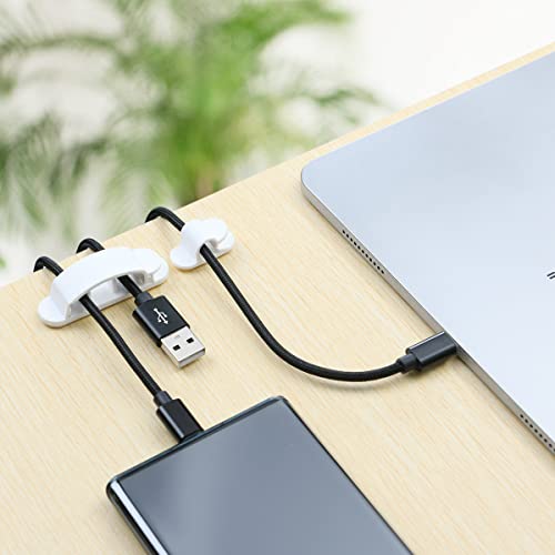 URAQT Organizer a Clip per Cavo, 12 Pezzi Organizer per la Gestione dei Cavi, Fermacavi Clip per Cavi di Alimentazione, Cavi di Ricarica, Cavi per Mouse e Altri Cavi Compatibili, Bianco
