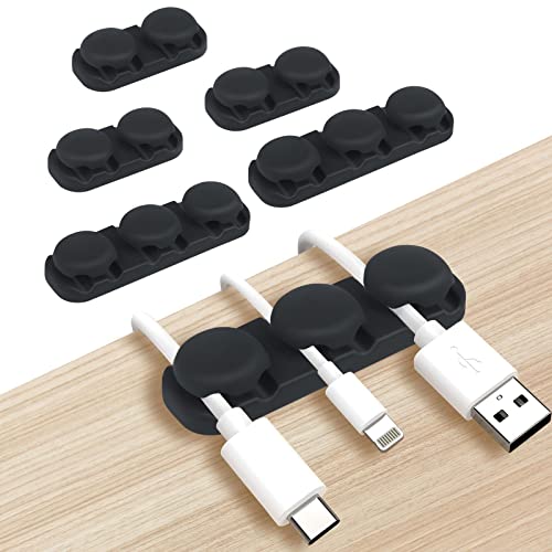 URAQT Organizer a Clip per Cavo, 5 Pezzi Organizer per la Gestione dei Cavi, Fermacavi Clip per Cavi di Alimentazione, Cavi di Ricarica, Cavi per Mouse e Altri Cavi Compatibili, Nero