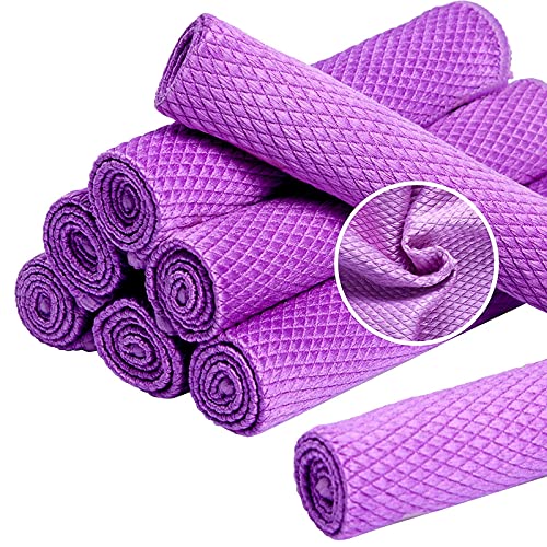 URAQT Panno per Pulizia in Microfibra 30X30 cm, 8 Pezzi Panno a Squame di Pesce, Panni Magici in Microfibra, per Casa, Cucina, Bagno, Ufficio, Auto, Moto (Viola)