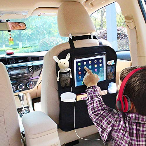 URAQT Protezione Sedile Auto, 2 Pezzi Protezione Sedile Auto Bambini Impermeabile, Multi-Tasca Organizer Sedile Posteriore Auto con 10'' Tasca Trasparente per iPad, Organizer Bambino per Sedile Auto
