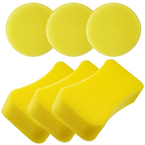 URAQT Spugne per Pulizia Auto, 3 Pezzi Spugna Auto + 3 Pezzi Spugna di Lucidatura, Spugne in Microfibra per Lucidatura, Riutilizzabili, per Pulizia, Ceratura e Lucidatura della Carrozzeria dell'auto