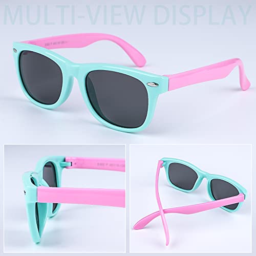 URATOT Confezione da 2 occhiali da sole polarizzati flessibili per bambini dai 4 ai 12 anni, Verde e rosa, blu e giallo, Medium