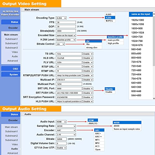 【Prodotti innovativi】- Il codificatore video è molto adatto per la trasmissione audio e video. Supporta vari server di streaming, come YouTube, Facebook, USSTREAM, LIVESTREAM, Twitch, Meridix, STREAMSPOT, DACAST, TIKILIVE, NetRMEDI, ecc.