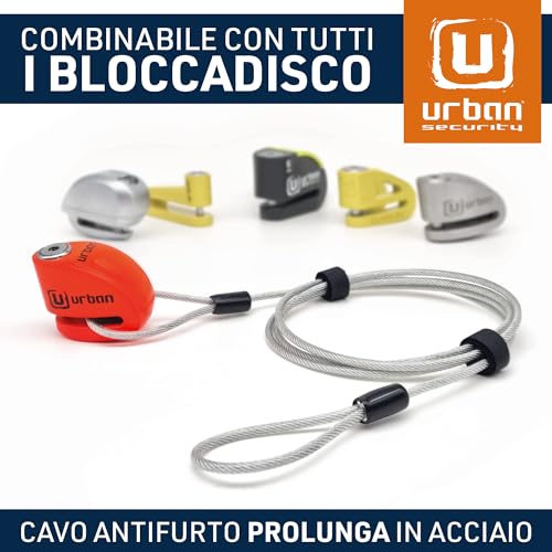 URBAN 5.200L Cavo antifurto prolunga bloccadisco moto, 200 cm, acciaio doppio cappio, cavo sicurezza multifunzionale per blocca disco, lucchetto casco moto, bici, sella, sedile, monopattino elettrico