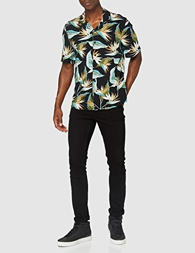 Urban Classics Blossoms Resort Shirt Hawaii-Hemd T, Black/Blossom, XL Uomo