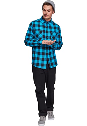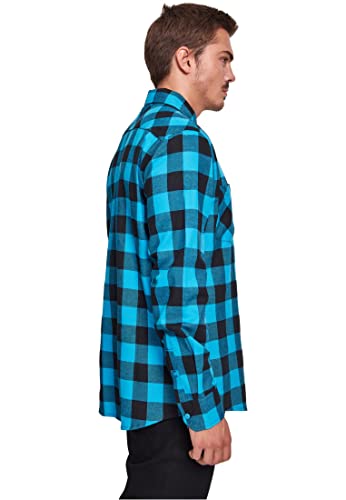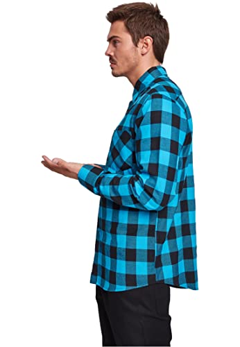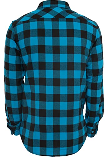 URBAN CLASSICS Camicia in Flanella a Maniche Lunghe da Uomo, Camicia Casual Lunga con Bottoni per Uomo, Vestibilità Regolare, Cotone Flanella, Colore: Nero/Tur, Taglia: XL