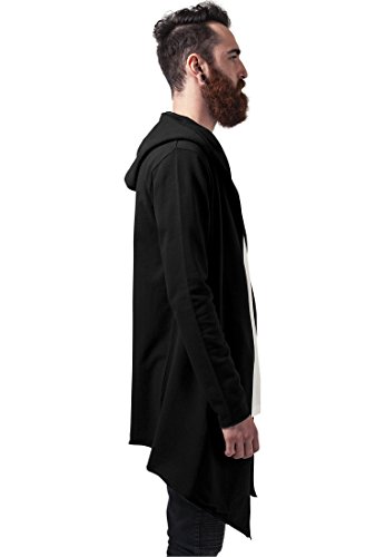 URBAN CLASSICS Uomo Cardigan Giacca Cappuccio, Maglione Manica Lunga, Invernale Asimmetrico, 100% Cotone, Stile Casual, Colore: nero, Taglia: XL