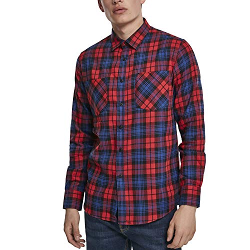 Urban Classics Hemd Checked Flanell Shirt 5 Camicia, Multicolore (Red/Royal 02373), XS Uomo