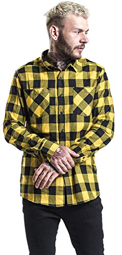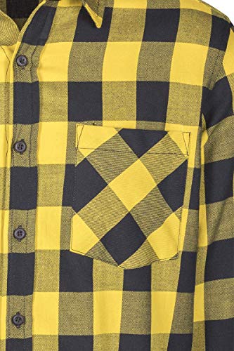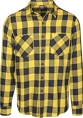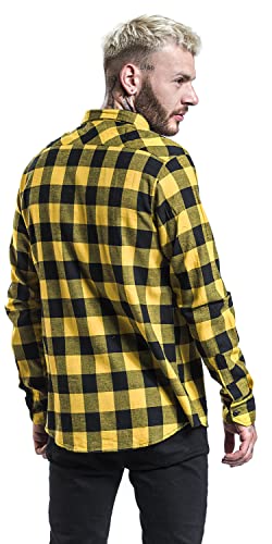 Urban Classics Checked Flannel Shirt Uomo Camicia in Flanella Nero/Giallo L 100% Cotone Regular