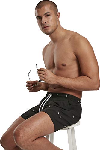 Urban Classics Costume da Bagno Uomo Board Shorts, Black/Palmtree, M