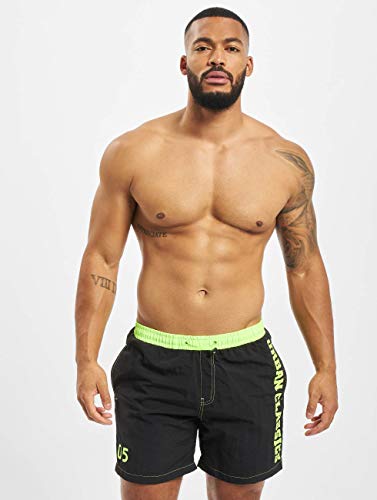 URBAN CLASSICS Costume da Bagno Uomo, Pantaloncini da Mare, Resistenti al Cloro e al Sale con Tasche Laterali e Coulisse, Nero e Arancione - Taglie S - 3XL