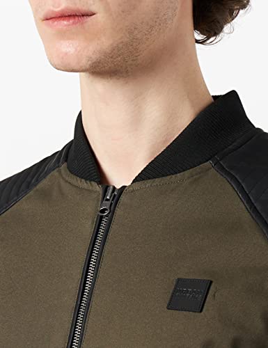 Urban Classics - Jacke Bomber Leather Imitation Sleeve Jacket, Giacca Uomo, Multicolore (Olv/Blk), Medium (Taglia Produttore: Medium)