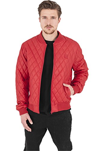 Urban Classics - Jacke Diamond Quilt Leather Imitation Jacket, Giacca Uomo, Rosso (Fire Red), Medium (Taglia Produttore: Medium)