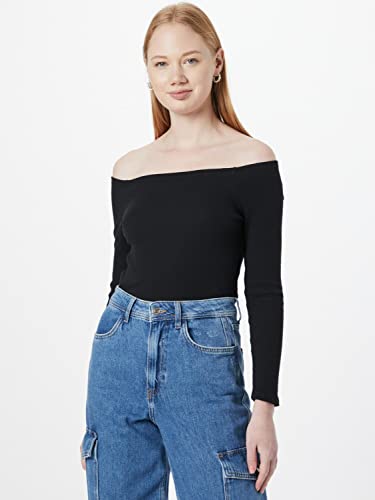 Urban Classics Ladies Off Shoulder Rib Longsleeve, T-Shirt Donna, Nero, M