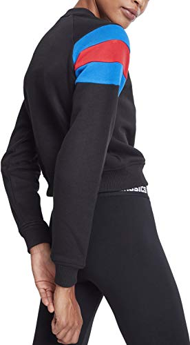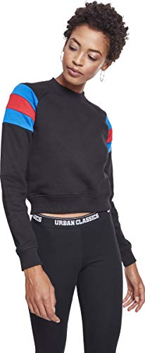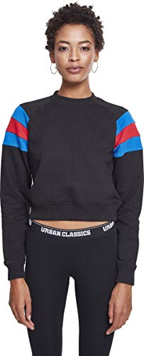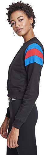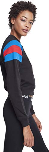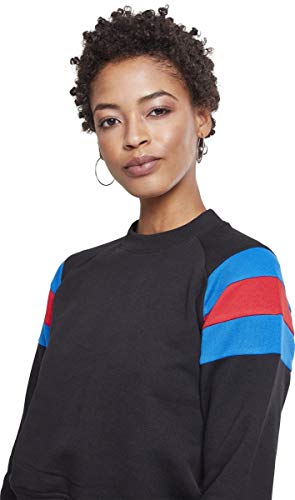 Urban Classics Ladies Sleeve Stripe Crew Felpa, Multicolore (Black/Brightblue/Firered 01558), Medium Donna