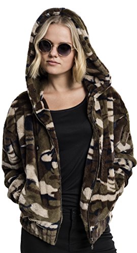 Urban Classics Ladies Teddy Jacket Felpa con Cappuccio, Multicolore (Wood Camo 396), M Donna