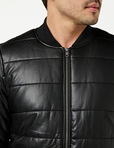Urban Classics Faux Leather Bubble Bomber, Nero (Black 00007), Large Uomo