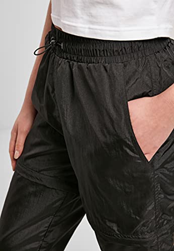 Urban Classics Pantaloni da Donna Shiny Crinkle in Nylon con Zip Tuta, Nero, XXXL