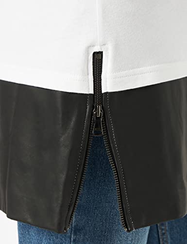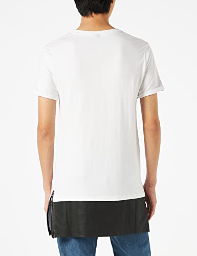 Urban Classics Long Zipped Leather Imitation Bottom Tee T-Shirt, Multicolore (Wht/Blk 224), Medium Uomo